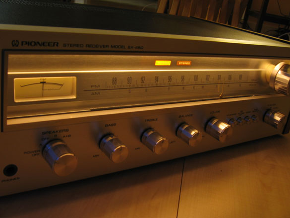 Afstemschaal en meter voor AM/ FM ontvangst warm geel oplichtend. Indicatielampjes voor power en stereo.