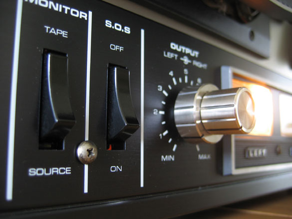 Eén centrale motor voor afspelen en spoelen. Riemaandrijving naar de capstan, de spoelschotels worden aangedreven via tussenwielen.