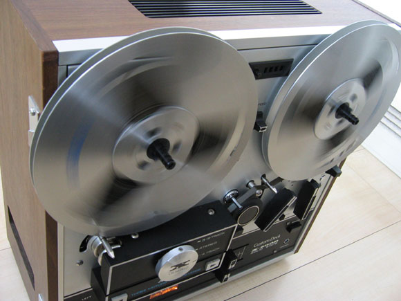 Drie motoren. Riemaandrijving naar de capstan, direct drive aandrijving van de spoelschotels
