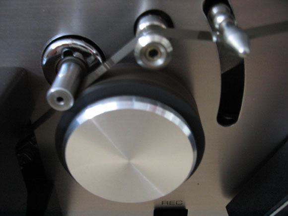 Drie motoren. Riemaandrijving naar de capstan, direct drive aandrijving van de spoelschotels