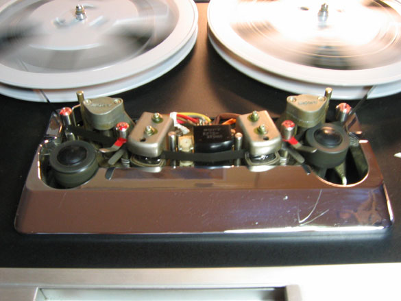 De dubbel uitgevoerde wiskop staat precies in het midden. Links van de wiskop zit de kop voor opnemen en afspelen en capstan voor spelen met de klok mee en rechts van de wiskop een zelfde set voor spelen tegen de klok in. Dubbele capstan dus, en dat allemaal met slechts één motor aan boord. Een zeer bijzondere combinatie. Slimme jongens daar bij Sony.